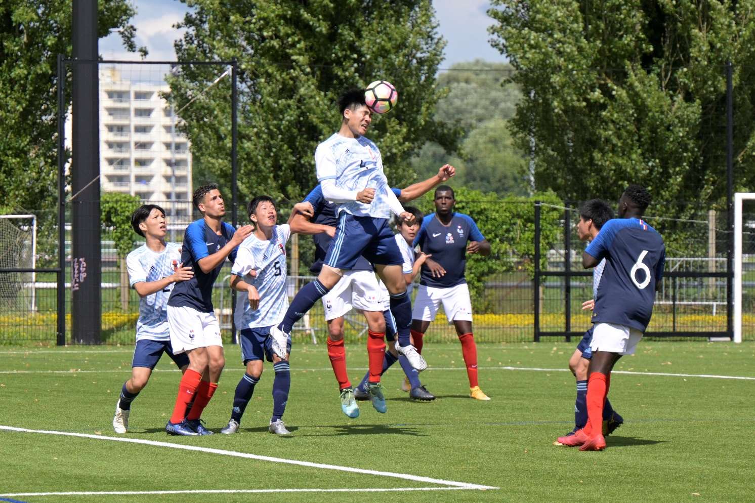 日本は全員攻撃・全員守備をチームコンセプトとし、前線や中盤からのプレスにより高い位置でのボール奪取とテンポのある攻撃を基本として、状況に応じて中央突破やサイド攻撃によりフランスゴールを目指しました。また、前線や中盤でボールを奪えない時は、コンパクトにしてバランスを保ち全員でゴールを守り、ボールを奪ったときは状況に応じてビルドアップによる攻撃を図りました。