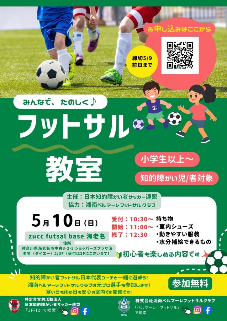知的障がい者フットサル地域連携プロジェクト フットサル教室実施のお知らせ(2026年4月神奈川)